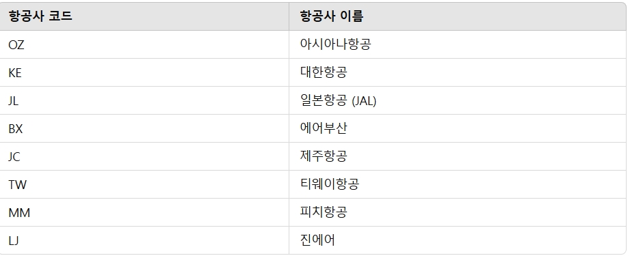 - 항공편 정보: 항공사, 편명, 도착 시간
